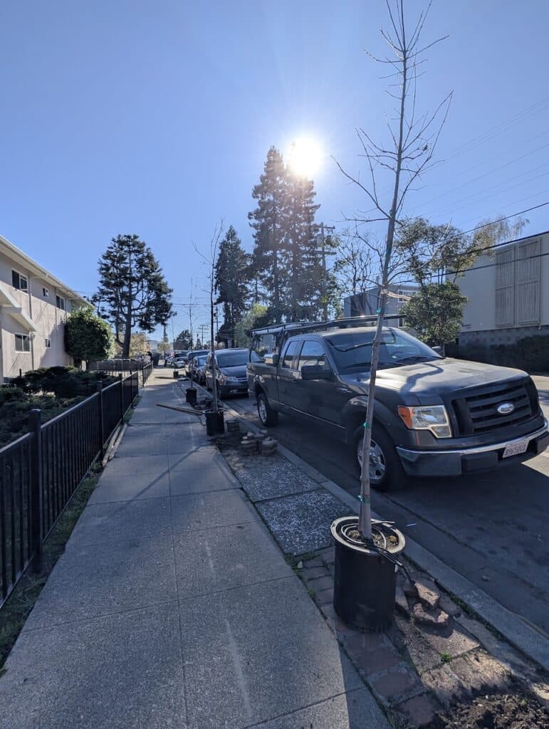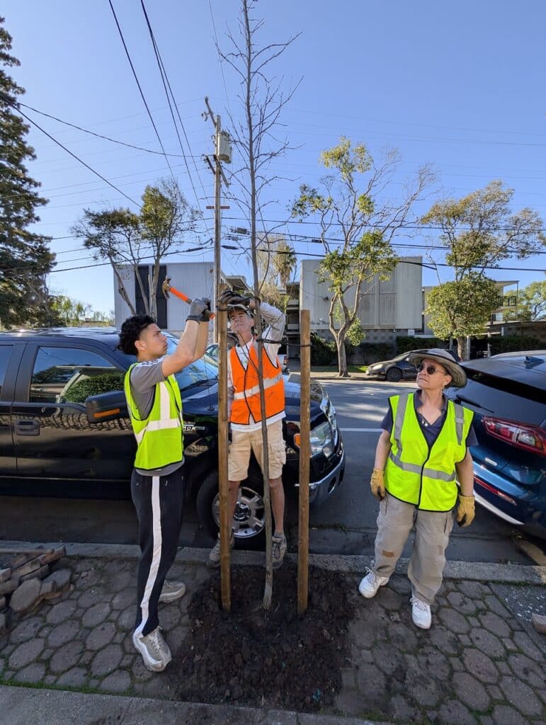 This planting was made possible thanks to a generous grant from PG&E, whose support helps us keep Redwood City’s “urban forest” growing. We also want to give a massive shout-out to the Department of Public Works (DPW) for their partnership in prepping the sites.
