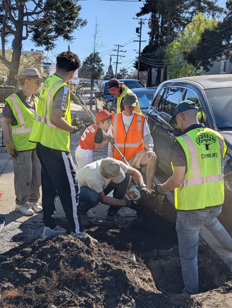 There is something transformative about a neighborhood coming together to plant trees. This Saturday, under a perfectly clear blue sky, Hudson Avenue in Redwood City became a little greener, a little cooler, and a lot more vibrant.